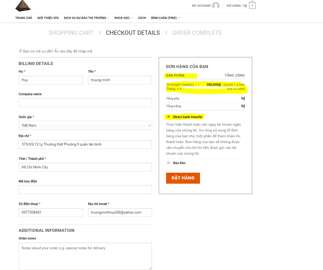 - Bước 4: Kiểm tra email và chờ đợi VFA chấp nhận đơn hàng miễn phí. Để thúc đẩy quá trình chấp nhận đơn hàng, bạn hãy forward email về [email protected] hoặc nhắn tin vào số phone 0977508451 (anh Huy)