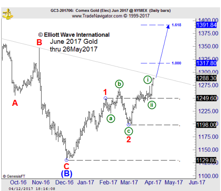 Tom Denham, Senior Metal Analyst, của www.elliottwave.com nói: “Gold may be rising in a third- of- a- third wave. The broad target of the rally is 1391.84 where wave 3 would achieve 1.618 times the length of wave 1″ (12/4/2017, Nguồn: elliottwave”)