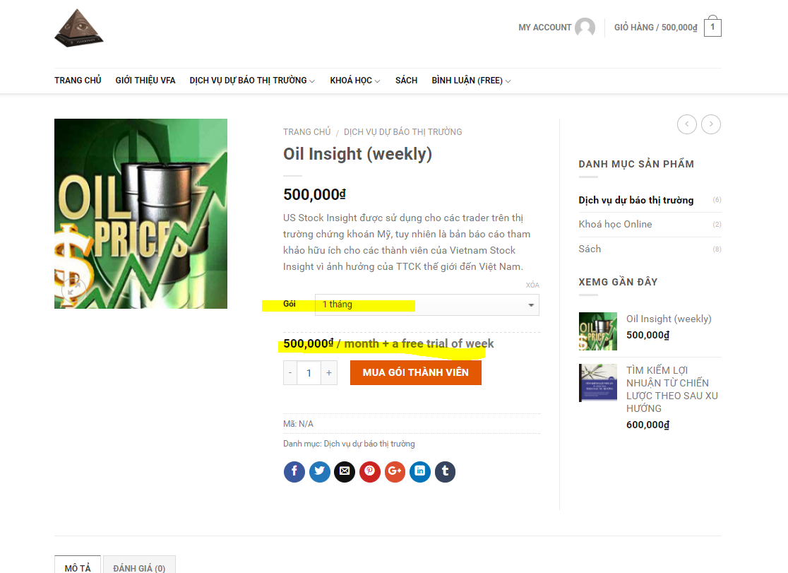 - Bước 2: Chọn sản phẩm GOLD INSIGHT tại đây. Nhập chọn gói 1 tháng (đừng cố gắng chọn gói cao hơn vì nó khiến đơn hàng của bạn không được chấp nhận). Nhập vào chữ: ‘MUA GÓI THÀNH VIÊN”, sau đó là nhập tiếp chữ “THÊM VÀO GIỎ”
