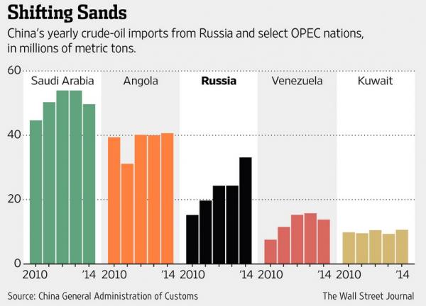 Tập Cận Bình của Trung Quốc giờ đây cũng đang gây dần sức ép để Ả Rập Xê Út phải ngả lòng về mối liên kết giữa Nga-Trung Quốc. Số liệu từ Wall Street Journal cho thấy, Trung Quốc- quốc gia nhập khẩu dầu mỏ lớn nhất thế giới, đang hạn chế dần mua dầu từ Ả Rập Xê Út và một số quốc gia trong khối OPEC trong khi tăng cường mua dầu từ Nga và một quốc gia ở Châu Á, là khu vực mà Trung Quốc có ảnh hưởng trong việc thiết lập mối quan hệ giao dịch mua bán dầu bằng đồng NDT.