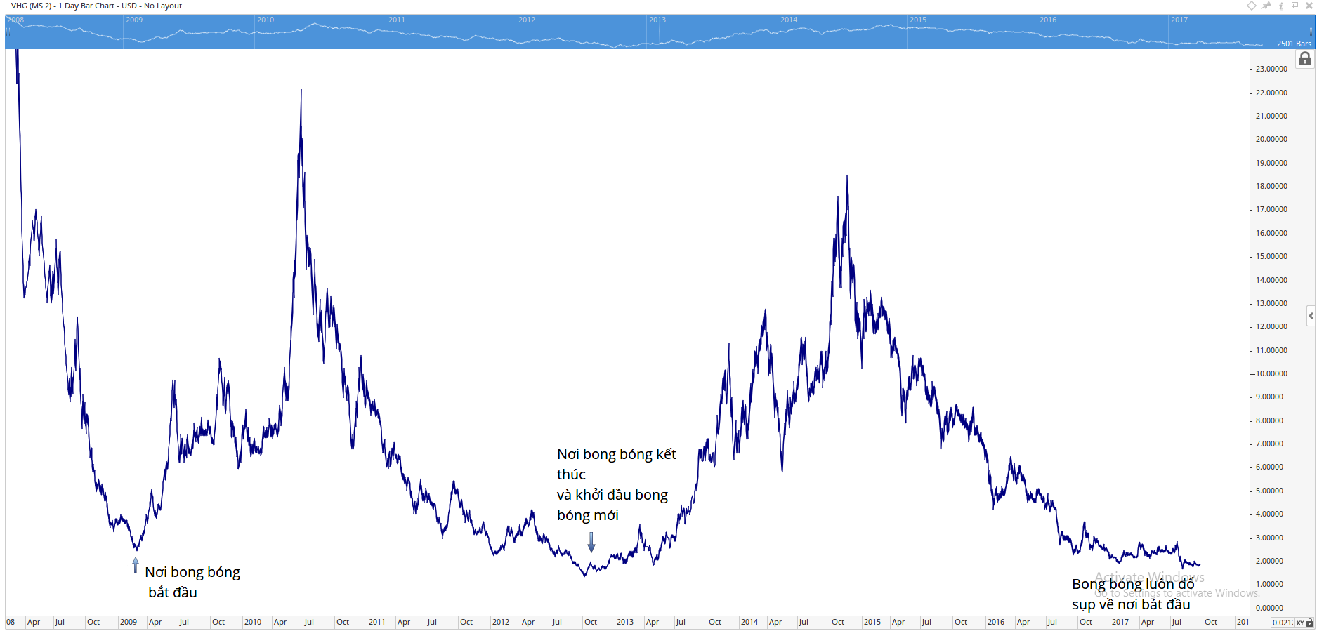 VHG, một trong những siêu bong bóng đầu cơ, in dấu nhiều cảm xúc của Trader là một ví dụ. Hãy suy nghĩ về ROS, một khi bong bóng đổ vỡ sẽ như thế nào nhỉ?