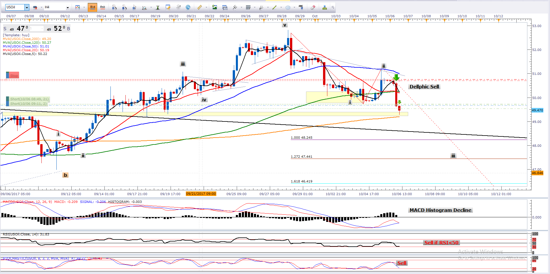 Trader có thể thực hiện tín hiện tín hiệu Sell trên đồ thị H4. Stoploss 50.74
