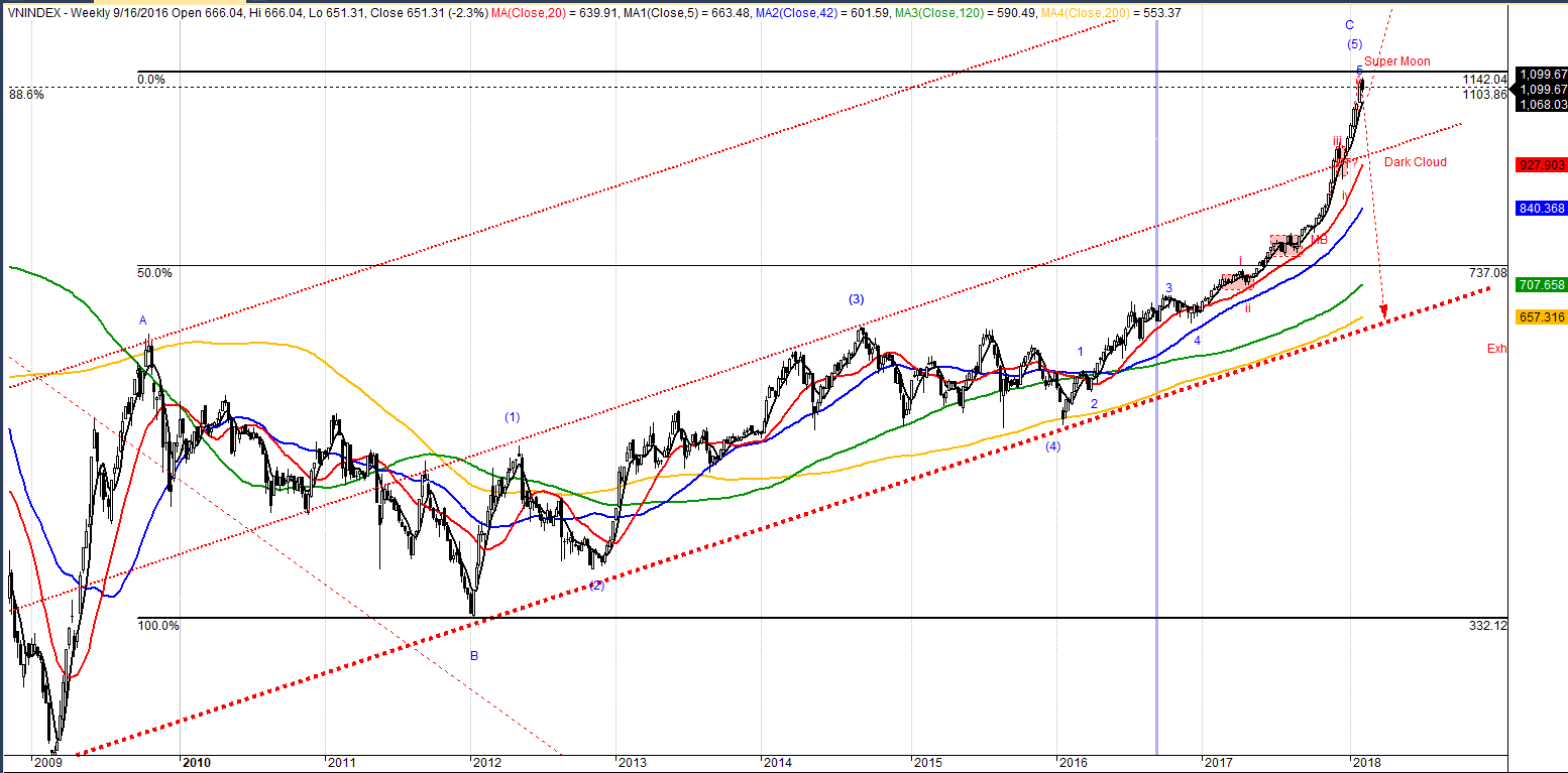 Bạn có biết rằng, nếu sử dụng quy tắc này cho chỉ số VN-Index, có xác suất 80%, chỉ số VN-Index sẽ mất tới 50% giá trị. Nếu tạm tính đỉnh là 1,100, thì 50% giá trị của 1,100 sẽ chỉ còn …550 điểm…Đó chính là đáy vào tháng 1.2016 khi chỉ số VN-Index bắt đầu bước vào bong bóng. Đừng hỏi tôi thời gian bao lâu chỉ số VN-Index sẽ trở về mức giá này…Tôi không biết…Tôi chỉ có hai gợi ý cho bạn