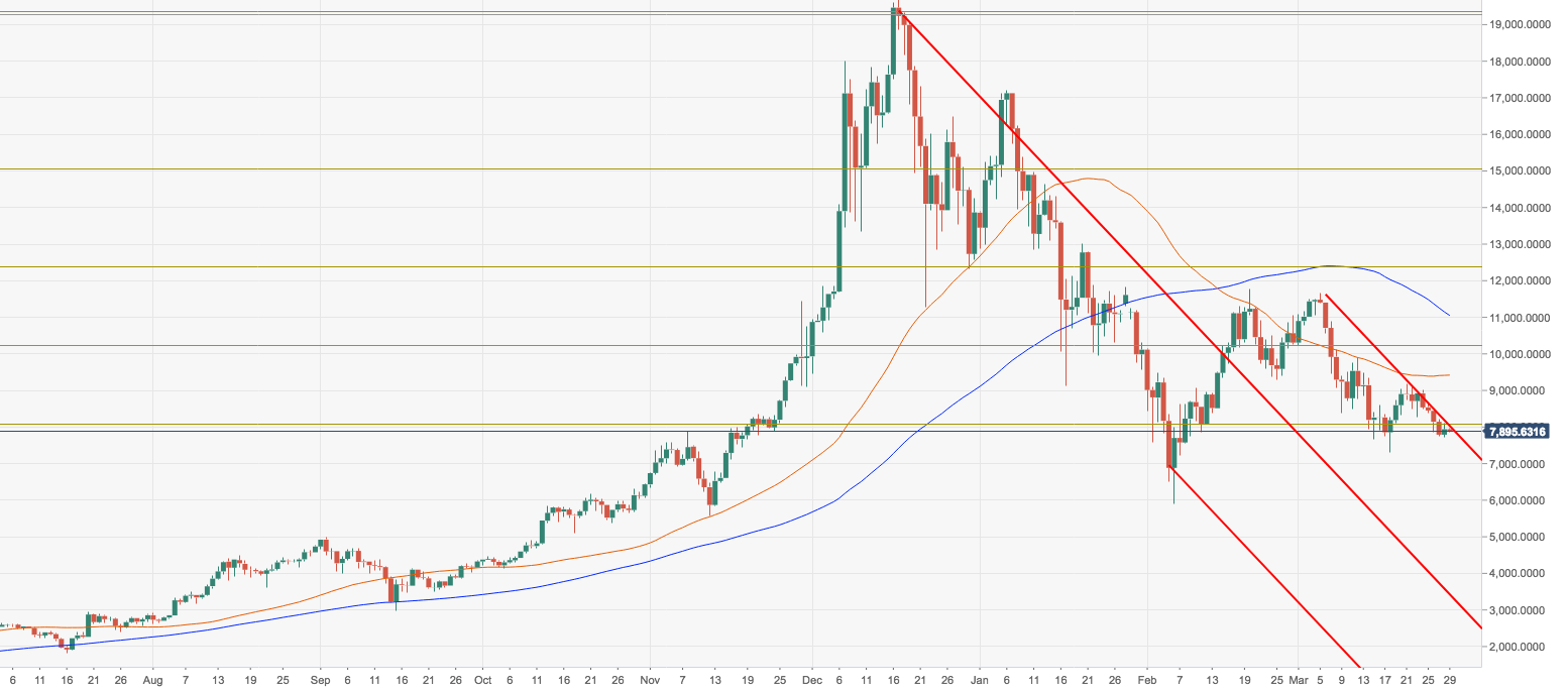 Đồ thị sau cho thấy Bitcoin đang chạy kênh giá xuống