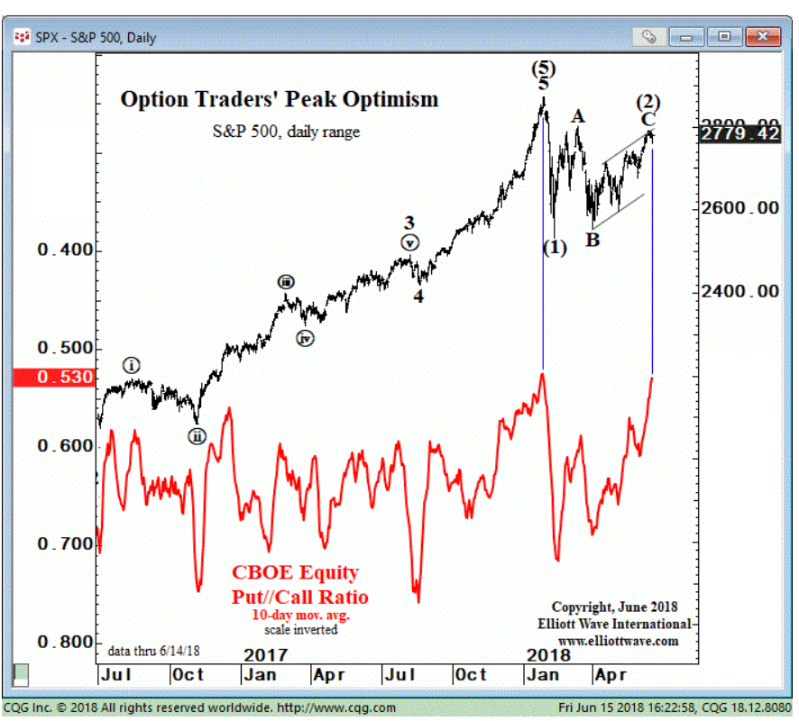 Chỉ số CBOE Put/Call Ratio là công cụ đo lường sentiment (cảm xúc thị trường). Hiện tai, chỉ số này đang ở mức đỉnh điểm tương ứng với đỉnh tháng 1/2018.