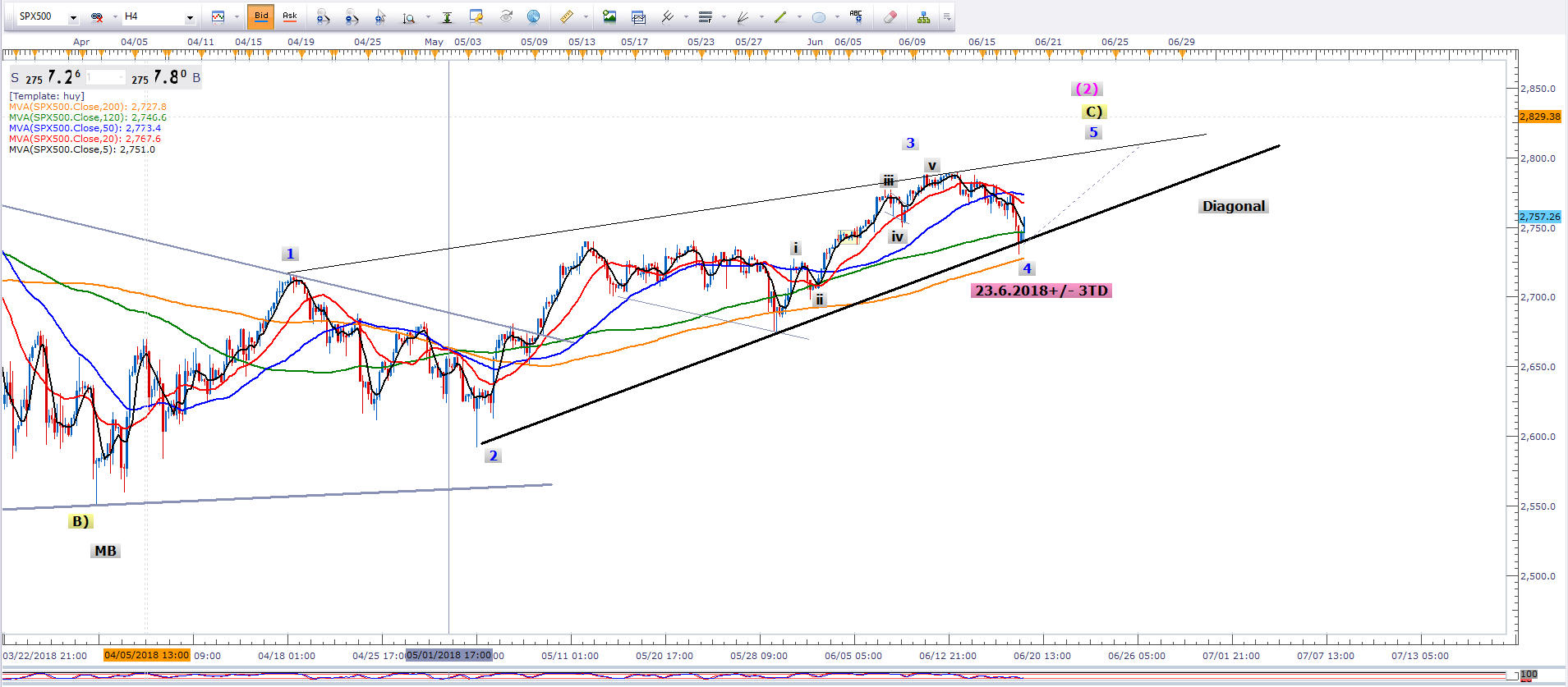 Ngày 19.6.2018, khi tôi đang update bài viết này, chỉ số chứng khoán SP500 đang giảm 0.5% vì Trung Quốc phản đòn Trump trong cuộc chiến thương mại. Nhưng ngày đảo chiều chiêm tinh 23.6.2018 +/-3 ngày giao dịch gần tới. và vẫn còn một tình huống khác cho kịch bản sóng chéo.