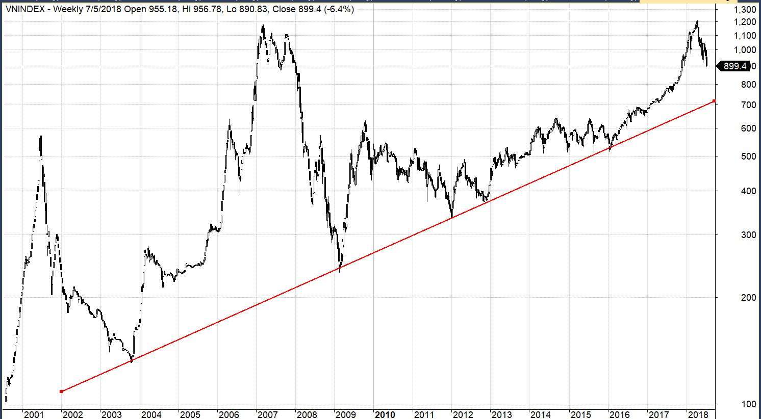 Lưu ý, vùng 710 chính là đường hỗ trợ dài hạn của chỉ số VN-Index.