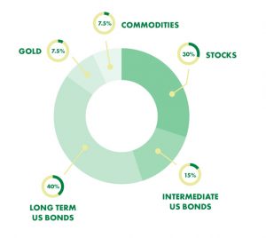 Thông thường, lời khuyên cổ xưa nhất để cân bằng danh muc (nghĩa là cân đối giữa rủi ro và lợi nhuận) là 50% cổ phiếu và 40 trái phiếu. Nhưng một thực tế, “danh mục cân bằng này” thường giảm 25%-40% khi thị trường con gấu xuất hiện. Điều này là do độ biến động của cổ phiếu gấp ba lần (rủi ro cao hơn 3 lần) trái phái phiếu. Vì thế, chỉ cần thị trường cổ phiếu sụp đổ, danh mục của bạn sẽ sụp đổ.