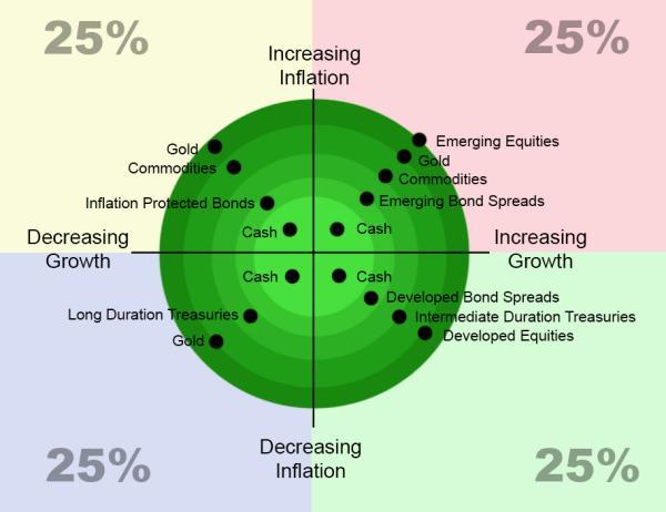 Dựa trên bốn mùa, ông đề xuất danh mục gọi là “All-Wealther” với sự phân bổ tài sản 40% cho trái phiếu chính phủ dài hạn (20-25 năm), 30% cho cổ phiếu và 15% cho trái phiếu chính phủ Mỹ trung hạn (7-10 năm), 7.5% cho vàng và 7.5% cho hàng hóa. Ray Dailo cho rằng đây là chiến lượng có thể tối thiếu hóa rủi ro nhưng tối đa hóa lợi nhuận.