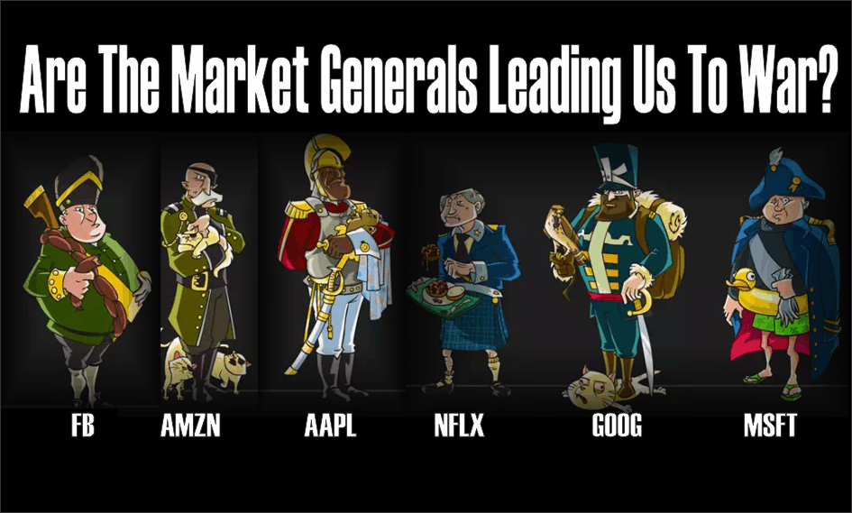 Có thế hình dung, mỗi cổ phiếu dẫn dắt thị trường giống như một viên “tướng”. Nếu bên gấu muốn đánh bại bò tót, phải đánh bại các viên tướng. Các viên tướng hiện nay là Facebook, Amazon, Apple, Netflix, Google, Microsoft. Gọi tắt là nhóm FAANG