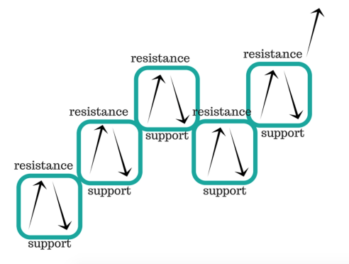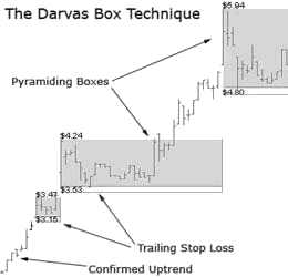 Sau này, Nicolas nổi tiếng với triết lý giao dịch theo chiếc hộp. Ngày nay, mọi người gọi đây là vùng hỗ trợ và kháng cự. Ông nhìn thấy thị trường luôn nằm trong các chiếc hộp như minh họa dưới đây. Sau đây là những mô tả của ông