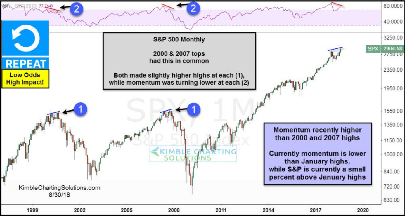 Chúng ta nhìn thấy sự phân kỳ âm giữa giá và RSI trên đồ thị tháng của SP500, giống như tại đỉnh năm 2000 và 2007.