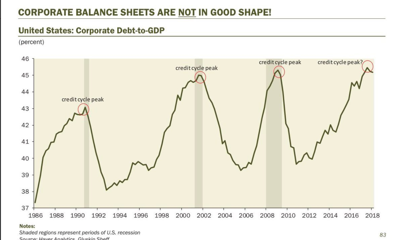 - Bong bóng nợ của các doanh nghiệp Mỹ. Tổng các khoản nợ của các doanh nghiệp phi tài chính của Mỹ đã tăng 40% từ đỉnh cao năm 2008, tương ứng thêm 2.5 tỷ đôla. Các khoản nợ của Mỹ hiện đang đứng ở 45% GDP, cao hơn cả thời điểm cuộc khủng hoảng Dotcom năm 2000 và khủng hoảng nhà đất Mỹ năm 2008.
