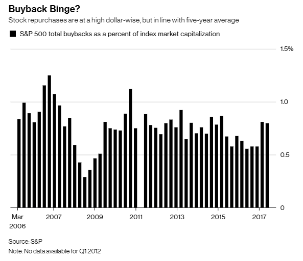 Tổng thống Donald Trump có thể cắt giảm thuế để hỗ trợ các doanh nghiệp. Vâng, nhưng các doanh nghiệp không lấy lợi nhuận tăng thêm để đầu tư phát triển mà lại tăng cường mua lại cổ phiếu. (Xem thêm bài viết của Bloomberg)