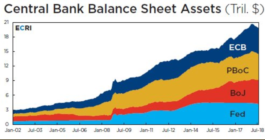 FED đang phải rút tiền ra khỏi thị trường, thanh khoản sẽ giảm đi. Không có dòng tiền đổ vào các thị trường tài chính là dấu hiệu của suy thoái. Vào đầu tháng 4.2018, khi bảng cân đối tài sản của các ngân hàng đồng loạt sụt giảm, một cuộc bán tháo cổ phiếu diễn ra khắp thị trường mới nổi lẫn phát triển.