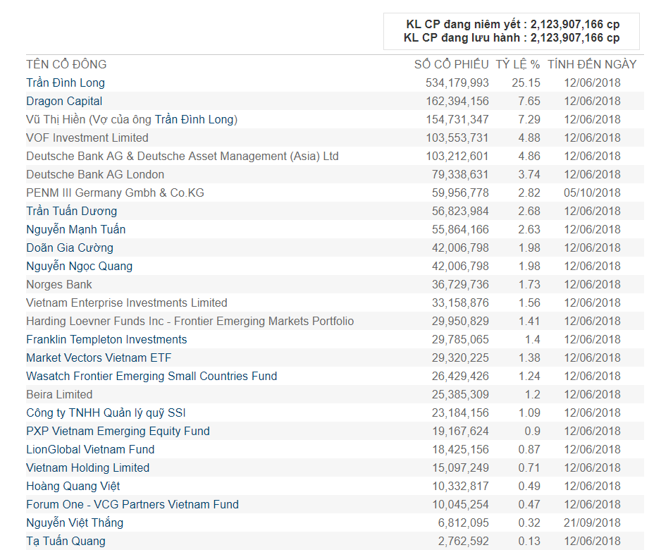 Nếu bạn muốn biết mánh lới của những kẻ chuyên bán khống khi chọn cổ phiếu để short sell thì đó chính là các cổ phiếu “Bị sở hữu quá mức”. Khi phần lớn nguồn hàng đều thuộc các quỹ đầu tư sở hữu đó chính là cơ hội để bán khống khi hàng loạt các quỹ bán ra sẽ khiến giá cổ phiếu đảo chiều rất nhanh. Sau đây là danh sách các cổ đông nắm tới 78% cổ phiếu của HPG. Nếu ngoại từ 25% của ông Trần ĐÌnh Long, thì vẫn còn tới 53% cổ phiếu đang được nắm giữ bởi tay to.