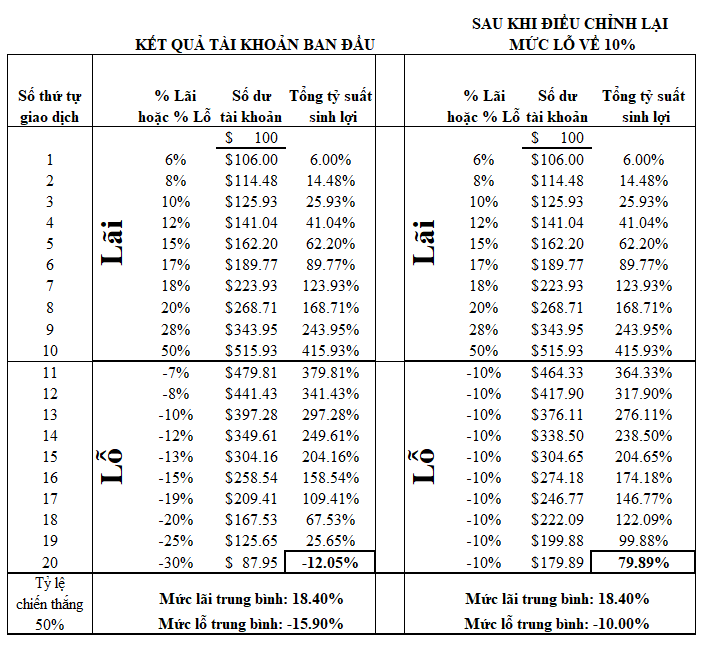Lưu ý: Trật tự các giao dịch khi được lãi kép không phải là vấn đề. Nghĩa là trật tự các giao dịch khác nhau cũng mang lại kết quả như nhau.