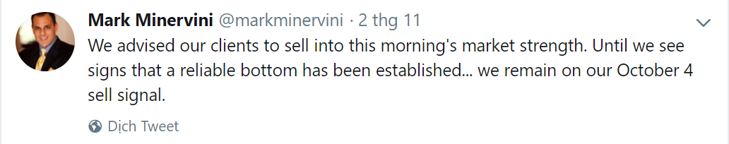 Phù Thủy Mark Minervini cảnh báo ông chưa nhìn thấy dấu hiệu tạo đáy đáng tin cậy, ông tư vấn khách hàng tranh thủ đợt hồi phục vừa qua để thoát hàng
