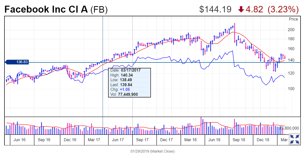 Case study Facebook vào tháng 9.2018. Tín hiệu bán tại mức 180 USD