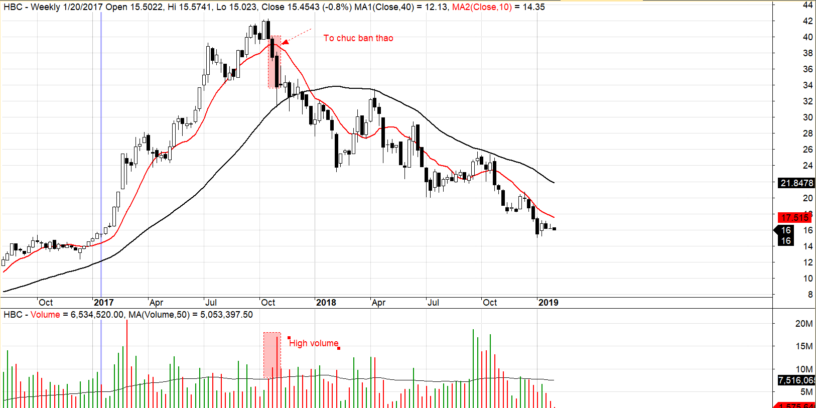 Vào hai tuần đầu của tháng 10.2017, HBC phá thủng đường trung bình di động 10 tuần (tương đương 50 ngày) bằng hai cây nến với khối lượng tăng đột biến, và lớn nhất trong nhiều tháng.