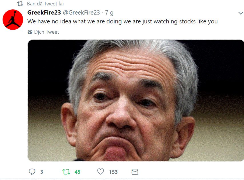 Một dòng tweet được trích dẫn lại khá hay là “We have no idea what we are doing we are just watching stocks like you (Chúng tôi chẳng biết phải làm gì ngoài việc ngồi xem thị trường giống như các bạn”. Một câu nói đùa cho thấy Fed giờ đây cũng đang “rất vô dụng” chỉ biết “ngó” mà thôi.
