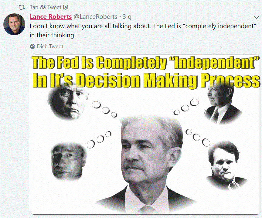 Chuyên gia kinh tế Lauce robert, giễu cợt hành động độc lập của FED. Liệu quyết định kiên nhẫn của Fed có chịu ảnh hưởng bởi Donald Trump. Giữa năm 2018, Powell còn nói tăng trưởng kinh tế Mỹ là vững chắc và quả quyết phải đẩy nhanh việc tăng lãi suất (cho rằng lãi suất còn chưa đạt tới mức cân bằng-“We are still a long-way from the ‘neutral rate.’” – Jerome Powell). Thậm chí trong cuộc họp tháng 12, fed vẫn tiếp tục tăng lãi suất, phớt lờ khuyến nghị của Trump. Thế mà giờ đây, Fed đột ngột trở nên bồ câu với hai từ “Kiên Nhẫn”