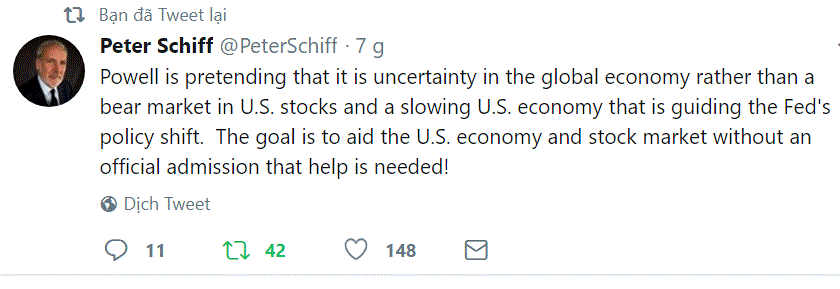 Là một chuyên gia kinh tê, Peter Schiff cho rằng: “Powell đang kéo dài sự bất ổn định của nền kinh tế toàn cầu hơn là cứu thị trường thoát khỏi con gấu”