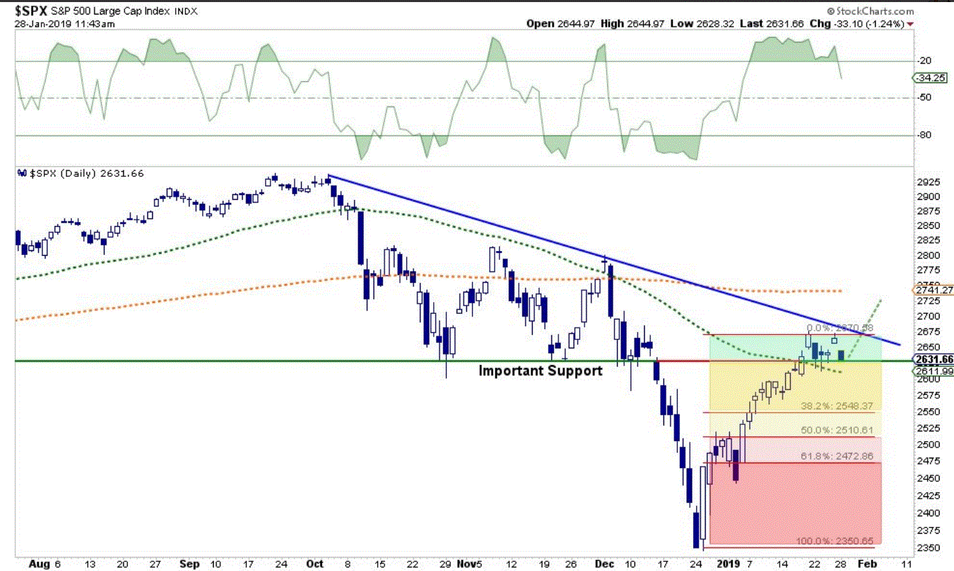 Tối ngày 30/1/2019, cuộc họp FOMC đã đưa ra quyết định sẽ “kiên nhẫn” trong việc tăng lãi suất và theo dõi hành động của thị trường. Phát biểu bồ cầu (Dovish) của Powell đã giúp Dow Jones tăng hơn 500 điểm vào tối qua.