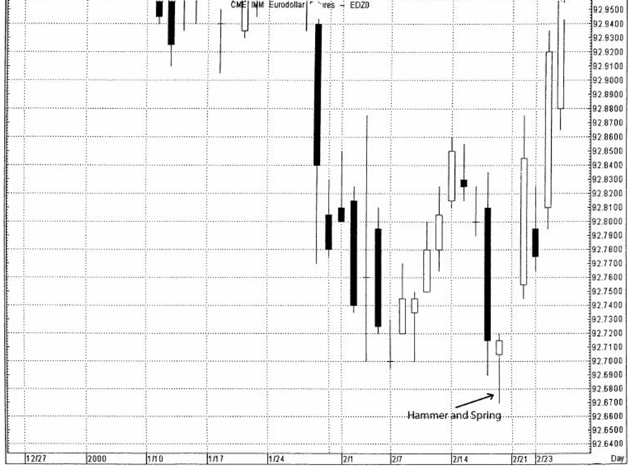 Steven Nison phát hiện một số mẫu hình nến đảo chiều giúp chúng ta phát hiện ra cơ hội mua ở giai đoạn Spring. Ví dụ như hammer