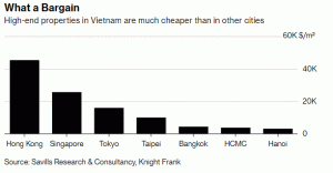 Điều đó đang khích thích các nhà đầu tư nước ngoài tập trung vào thị trường bất động sản của Vietnam, vì giới nhà giàu Việt Nam đang mở rộng (ghi chú: Vietnam nằm trong số 10 quốc gia có số người giàu tăng nhanh nhất) sẽ đẩy mạnh nhu cầu mua bất động sản để cất giữ tài sản thay cho đồng tiền nội địa dễ bị mất giá. Giá nhà ở Vietnam vẫn còn rẻ hơn khi so với Luân Đôn, Hồng Kông, Sydney và New York.