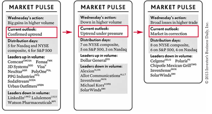 Cuốn sách ‘Hướng Dẫn Thực Hành CANSLIM cho người mới bắt đầu” cho biết, NHật Báo IBD xác định thị trường chỉ ở trong 3 giai đoạn