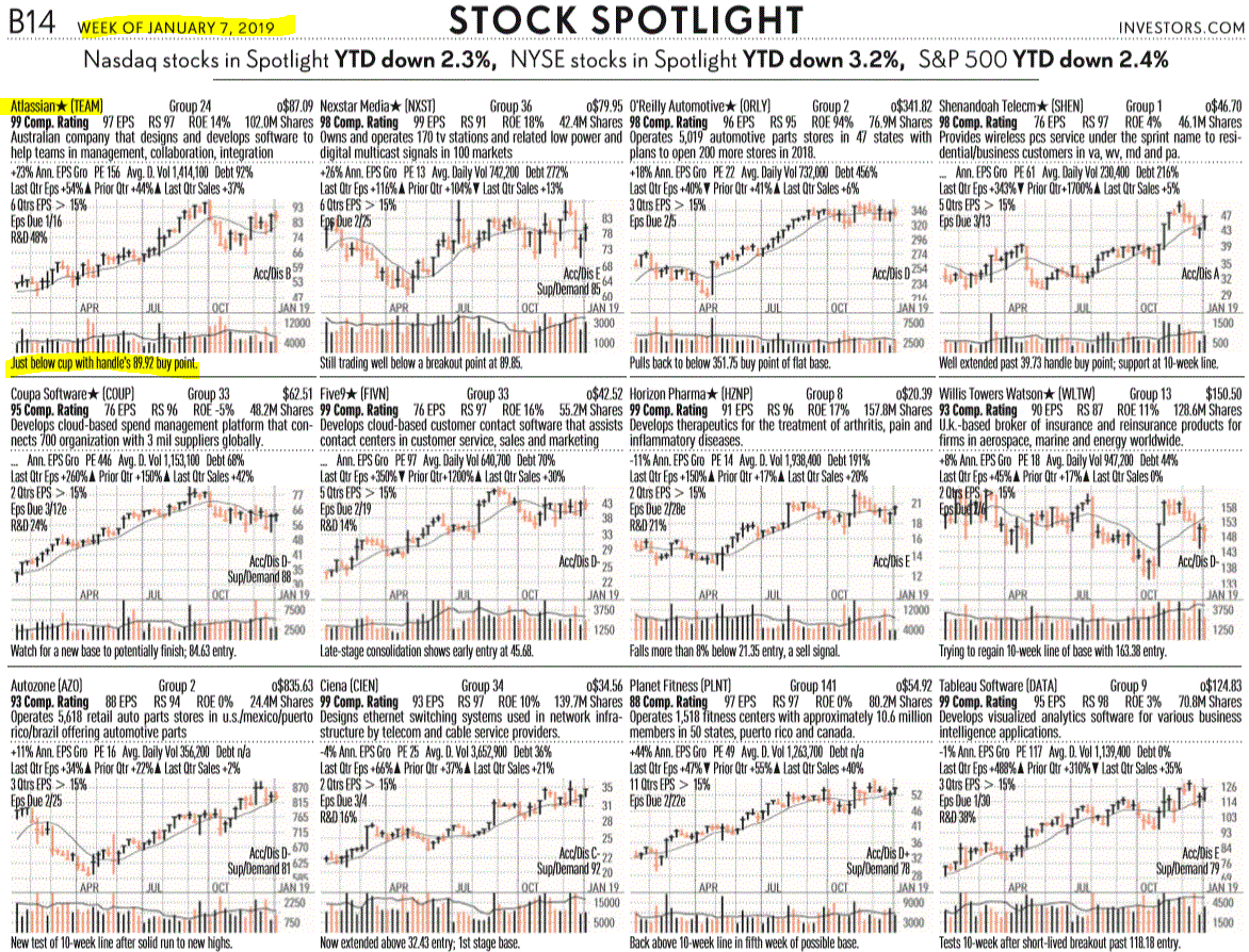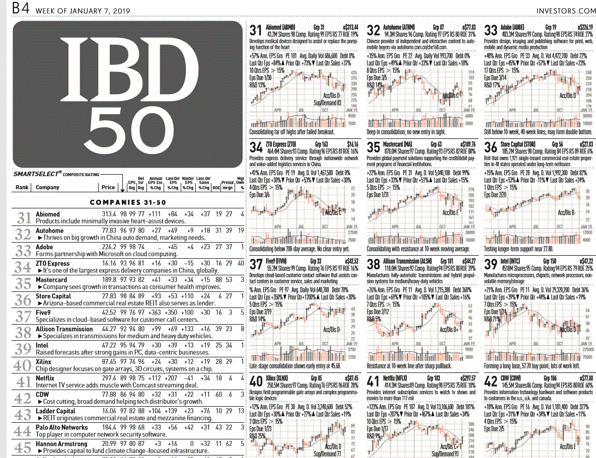 Nếu bạn đang giao dịch trên TTCK Mỹ, có thể chuyển ngay lập tức sang bước 2 là chọn cổ phiếu để mua. Bạn xem danh sách IBD50 và Stock Spotlight để tìm kiếm các mã cổ phiếu đang xuất hiện mẫu hình giá gì và điểm mua chi tiết