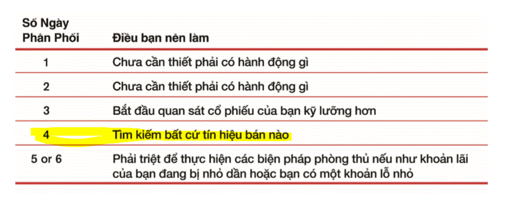 Theo giải thích của William O’Neil, bạn phải tìm kiếm các tín hiệu bán khi các chỉ số thị trường có 4 ngày phân phối.