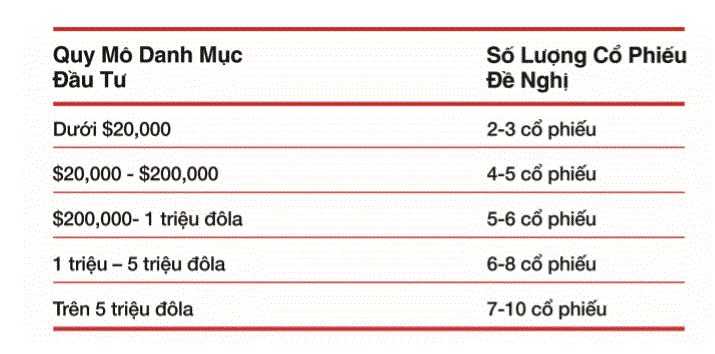 Dựa trên một vài khái niệm ở trên, sau đây là một số nguyên tắc chung cơ bản về số lượng cổ phiếu bạn nên sở hữu trong danh mục. Với tài khoản chưa tới 500 triệu, bạn chỉ nên sở hữu 2-3 cổ phiếu. Còn nếu tài khoản từ 500 triệu đến tầm 5 tỷ thì chỉ tầm 4-5 cổ phiếu. Đối với một nhà đầu tư trung bình, tài khoản tầm quanh 1 tỷ đồng, thì có lẽ 3-4 cổ phiếu là con số hợp lý nhất.