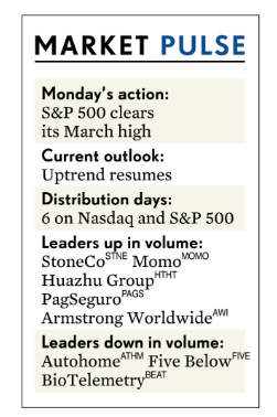 Do đó, Nhật Báo IBD quyết định thay đổi triển vọng thị trường sang “Xu Hướng Tăng Giá Được Xác Nhận (Confirmed Uptrend), sau vài tuần ở trạng thái “Xu Hướng Tăng Có Thể Bị Thay Đổi (Uptrend Under Pressure). Với rủi ro được hạ dần, nhà đầu tư có thể tham gia giải ngân ở một số cổ phiếu hàng đầu. Số ngày phân phối của S&P500 giảm xuống 1 ngày, còn 6 ngày, giống như Nasdaq.