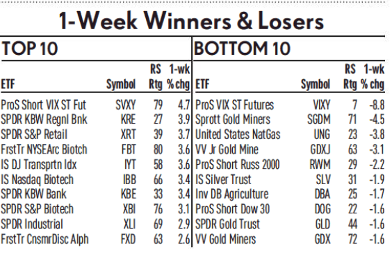 Bên cạnh các thông tin về quỹ ETF, Nhật Báo IBD còn có bảng “Người Chiến Thắng & Kẻ Thất Bại (Winners & Losers)” tại trang chuyên về các quỹ ETF. Mỗi ngày, trang này sẽ liệt kê ra các quỹ ETF hoạt động tốt nhất và tệ nhất trong một giai đoạn nhất định, được xoay tua theo ngày: