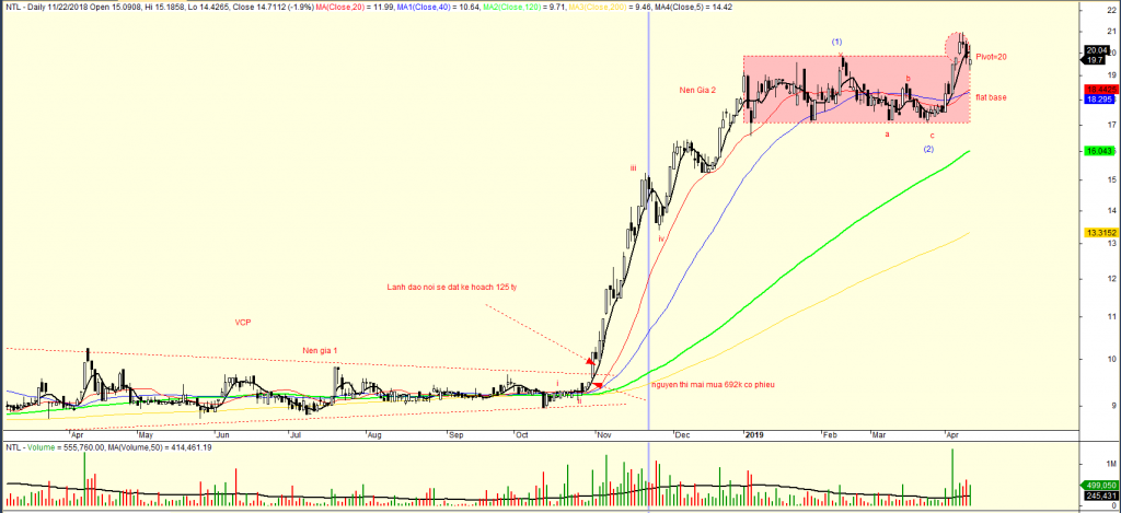 Cổ phiếu NTL đang ở dưới đôi chút so với điểm pivot của nền giá phẳng. Đây là điều thường xảy ra. Các cổ phiếu tăng trưởng có thể giảm về thấp hơn đôi chút so với điểm pivot khi thị trường chung có diễn biến xấu. Lưu ý, hãy sẵn sàng cắt lỗ 7%-8% so với giá mua của bạn nền như thị trường chung tiếp tục xấu đi.