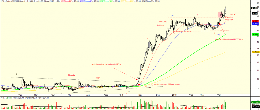 Cổ phiếu NTL vẫn thể hiện sức tăng giá tốt với giá tăng 1.9% với khối lượng giao dịch cao hơn mức thanh khoản bình quân 50 phiên.
