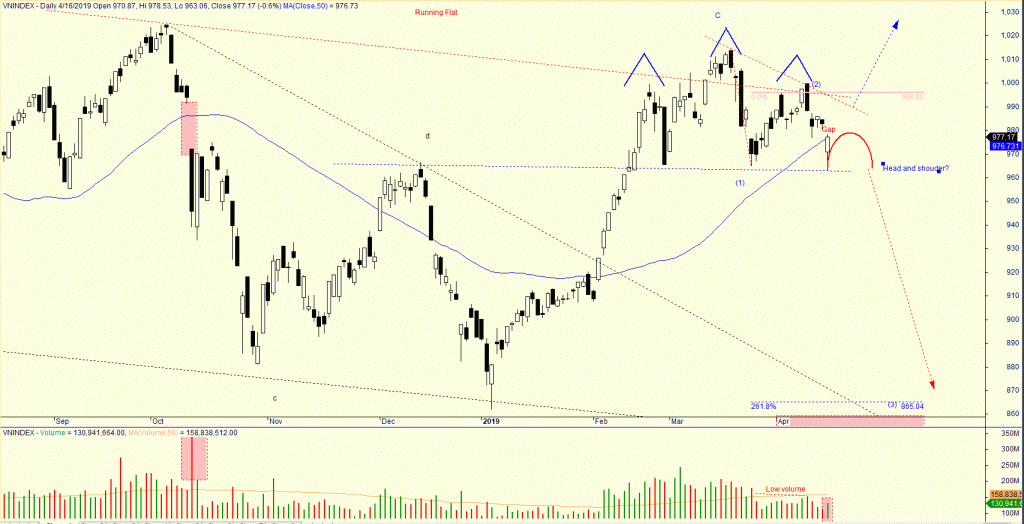 Mẫu hình vai đầu vai vẫn được theo dõi trong đó đường viền cổ 965 điểm đóng vai trò ngưỡng hỗ trợ quan trọng. Nếu giá phá thủng 965 điểm, mẫu hình vai đầu vai sẽ được hoàn tất và xu hướng giảm giá sẽ tiếp tục.