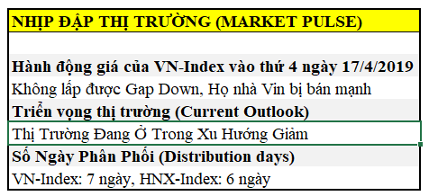 Trên thị trường chứng khoán Mỹ, dữ liệu hộp Nhịp Đập THị Trường (Market Pulse) của Nhật Báo IBD ngày 17/4/2019 cho thấy S&P500 trở lại 6 ngày phân phối.