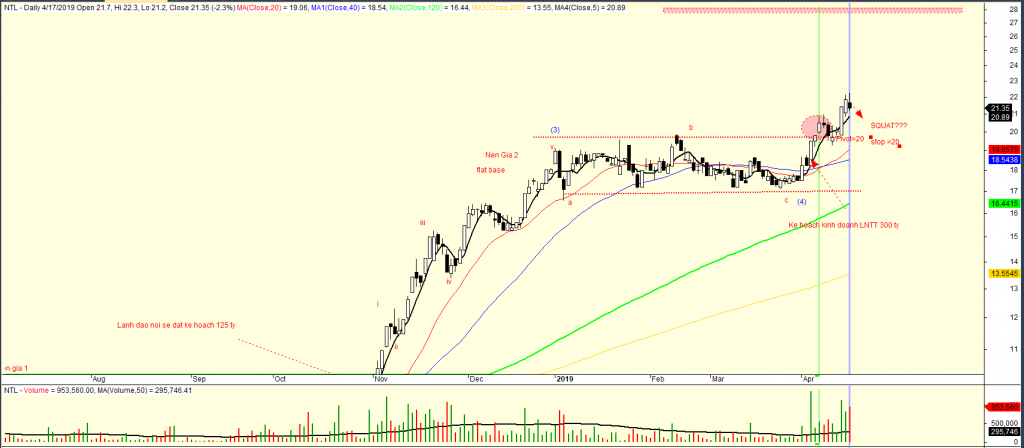 Tôi không dự báo thị trường và cả NTL, hãy hành động theo diễn biến giá hiện tại. Điểm pivot của NTL là 20 và hãy sẵn sàng cutloss khi giá giảm dưới mức giá này.