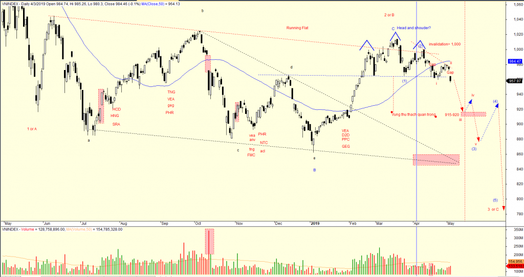 Mục tiêu giá mà tôi đang quan sát là 915-920 điểm, tương ứng mục tiêu giá của mẫu hình vai đầu vai và Fibo 1.618 lần sóng i. Đồng thời cũng là FIbonacci 61.8% của đợt tăng giá từ đáy ngày 9.1.2019 lên đỉnh ngày 19.3.2019.