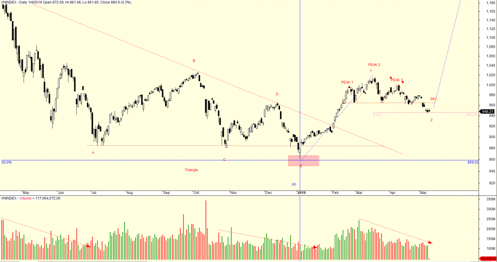 Hãy tiếp tục quan sát một kịch bản khác thận trọng hơn. Nếu VN-Index không có các mức điểm 963 và 982 như tôi phân tích ở trên, khả năng VN-Index vẫn còn một đợt down nữa.