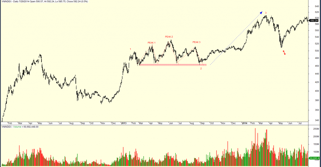 Và đây đang là điều đang xuất hiện ở VN-Index. Một mô hình vai đầu vai xuất hiện với Neckline (đường viền cổ) ở 963. NẾU NHƯ VN-INDEX TRỞ LẠI TRÊN 963 ĐIỂM, ĐÓ LÀ DẤU HIỆU QUAN TRỌNG CHO THẤY MÔ HÌNH VAI ĐẦU VAI THẤT BẠI VÀ TRỞ THÀNH MẪU HÌNH CŨNG CỐ XU HƯỚNG.