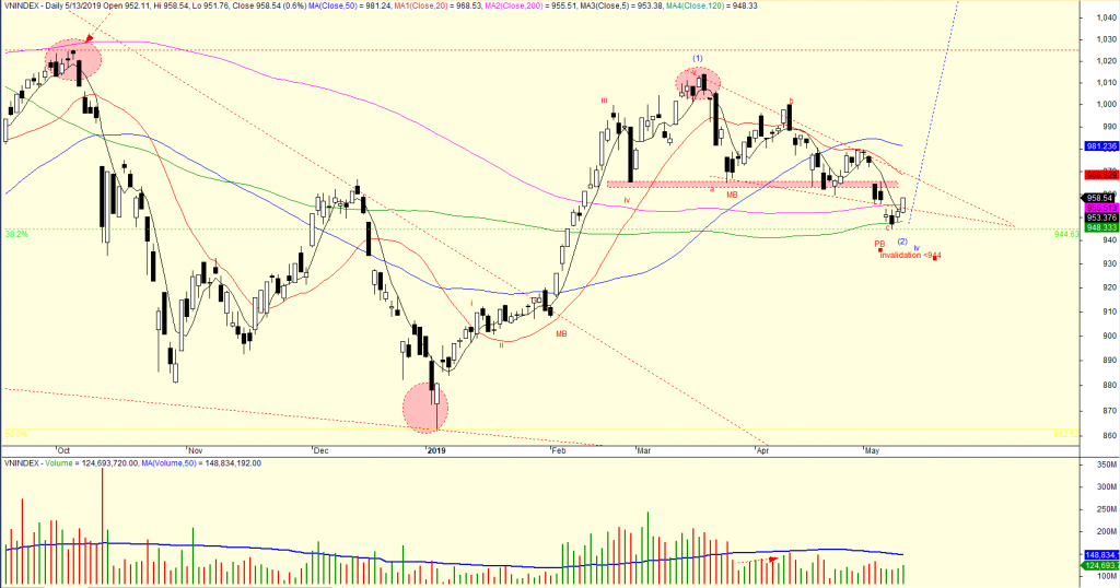 Theo đó, chỉ số VN-Index tăng 5.99 điểm (tương ứng 0.63%) và đóng cửa ở mức 958.54 điểm. Hành động giá rất tích cực khi VN-Index đóng cửa ở mức cao nhất ngày cùng với khối lượng giao dịch cao hơn phiên hôm trước.
