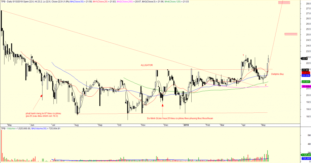 Trong nhóm ngân hàng, tôi đánh giá tích cực TPB. Cổ phiếu này tiếp tục có phiên tăng giá sau khi có điểm mua theo Dellphic Buy.