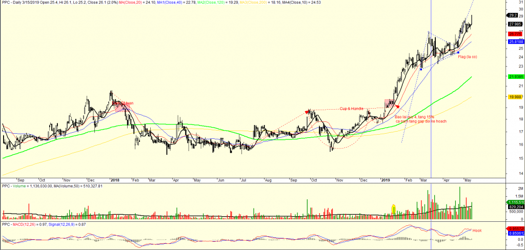 Các cổ phiếu midcap vẫn đang là tâm điểm chú ý của tôi. NTL phiên hôm nay đóng cửa tăng trần. Cổ phiếu PPC bật tăng mạnh với thanh khoản tốt. Đường MA10 ngày đang hỗ trợ tốt cho cổ phiếu này.
