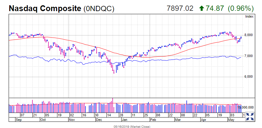 Dựa trên kiểu phục hồi chữ V sau đợt bán tháo cuối năm 2018, thì đợt điều chỉnh (pullback) hiện nay không gây ngạc nhiên đối với Mark Minervini. Chỉ số Nasdaq hiện nay đã thiết lập đỉnh cao mới. Tuy nhiên, hiện nay số lượng cổ phiếu nằm trên đường trung bình di động 200 ngày đang ít hơn 50%, do đó Mark cho rằng đang có “tín hiệu xấu trong ngắn hạn”.