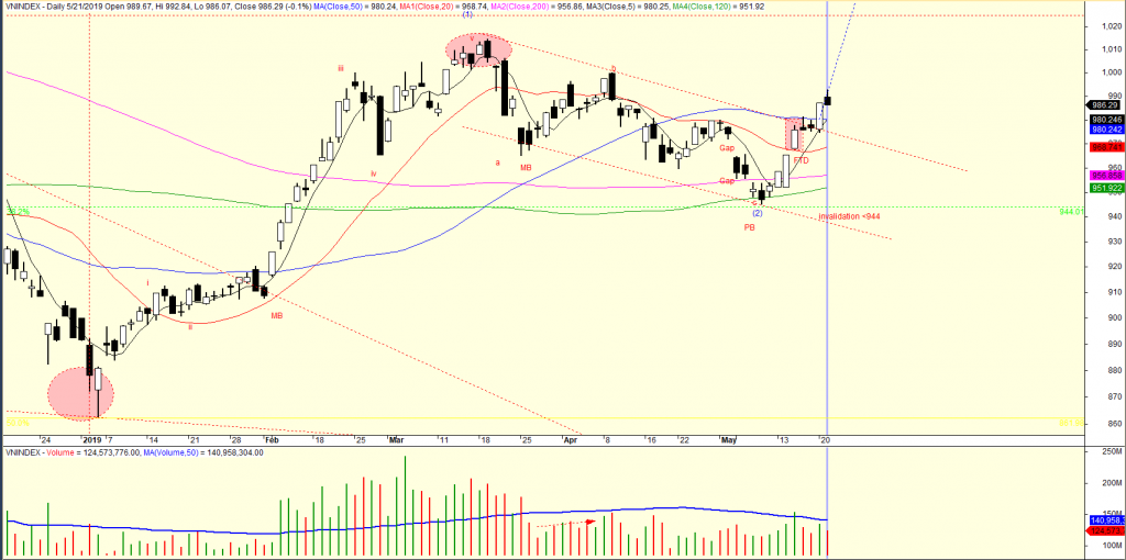 Việc TTCK Mỹ giảm điểm hai phiên liên tiếp rõ ràng không tạo nên thông tin hỗ trợ. Để TTCK Việt Nam đi vào uptrend bền vững, không thể thiếu lực hỗ trợ từ các “tay cao bồi nước Mỹ”. Các chỉ số chứng khoán Mỹ trong 1-2 phiên tới cần có ngày Bùng Nổ Theo Đà để đưa TTCK quay lại quỹ đạo Uptrend.