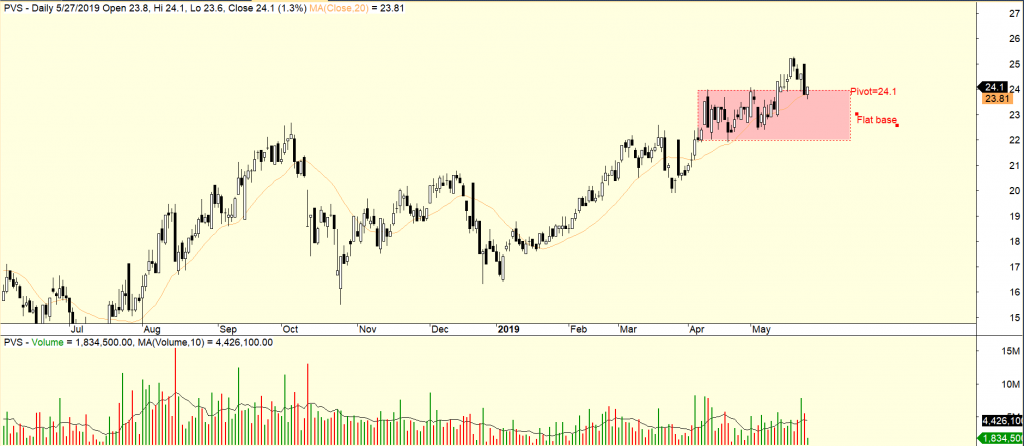 Cổ phiếu PVS đang test lại điểm pivot một lần nữa. Chúng ta đang chờ xem PVS có squat thành công hay không?